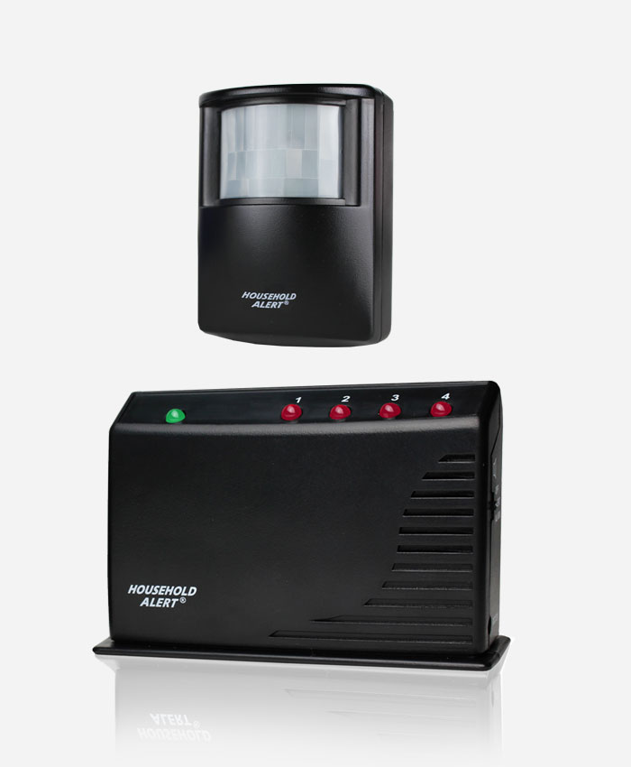 One HA-434RL Household Alert® Receiver (AC/DC adapter included) – One HA-434TL Indoor/Outdoor Motion Sensor (Battery not included).