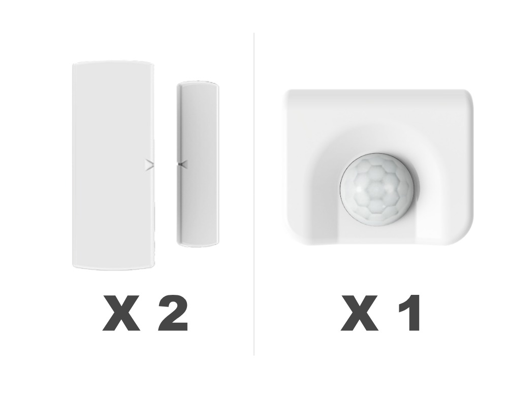 2 Door / Window Sensors and 1 Motion Sensor, 3S-MT