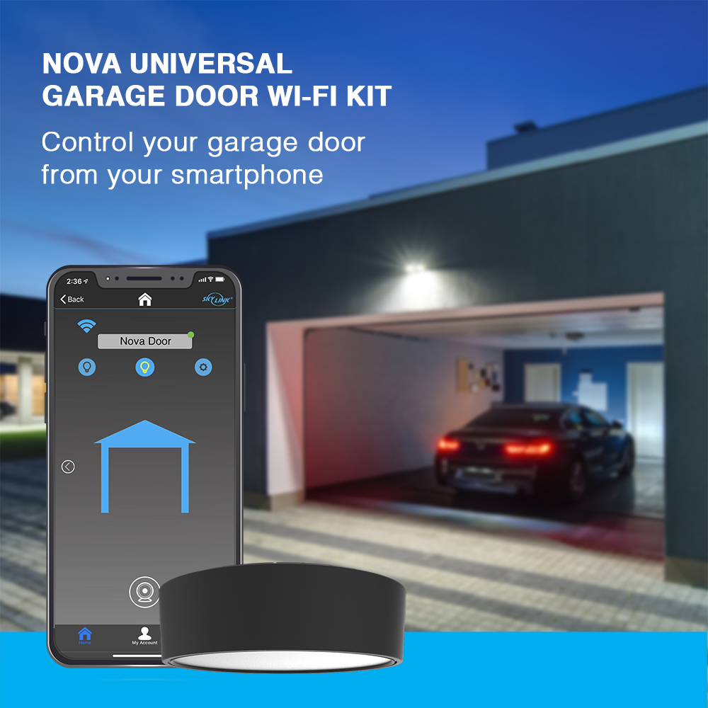 – NOVA Universal Garage Door Wi-Fi Kit helps retrofit any existing garage door opener to have full control from your Smartphone.
